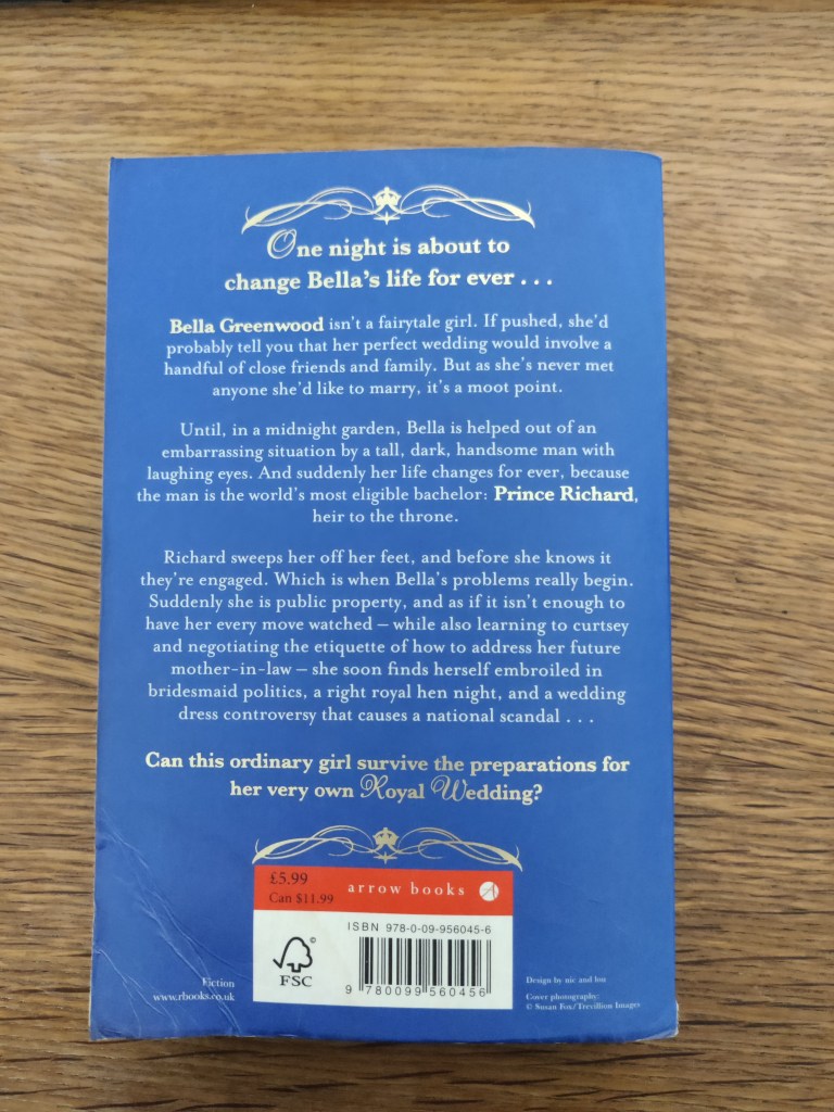 This book is from the perspective of Bella Greenwood, recently returned from counting fish on an exotic island in the middle of nowhere and hopelessly out of touch with current fashions and events – This is a position I can relate to deeply without the excuse of months of isolation from the real world. She immediately moves in with best friend Lottie, who works in PR and takes Bella to a shiny posh party where she bumps into a mysterious stranger. The romance blossoms from there in a very roundabout route with Richard, heir to the throne, trying to juggle privacy, duty and desire.