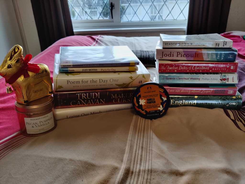 In November I went on a spree in the local library leaving with eleven books, as seen below, winding my way through a couple of carefully selected shops to get myself some seasonal treats on the way home. You can all rest assured that the chocolate reindeer was dealt with appropriately, that the pumpkin moisturiser was as luxurious as hoped and the the pecan candle has been working hard through the long cold nights. But what about the books I hear you say….