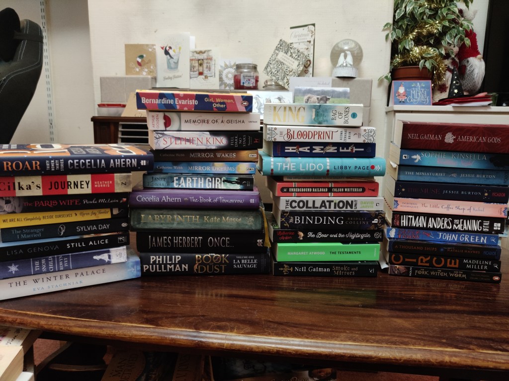And finally we have the Charity Shop Pile (or return to owner pile). Making this pile was really difficult, and there are more than a few books on that pile that I would happily read. However, I felt strongly that the size of my TBR pile was overwhelming and that despite it now being more organised, something had to go.